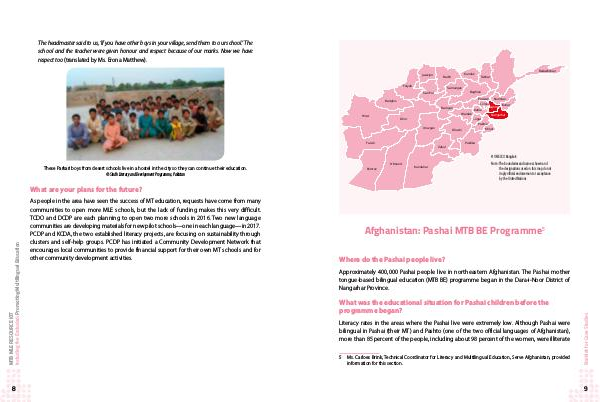 Approximately 400,000 Pashai people live in northeastern Afghanistan. The Pashai mother tongue-based bilingual education( MTB BE) programme began in the Dara-i-Noor District of Nangarhar Province.