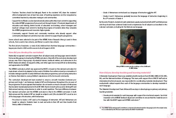 1. Develop trial materials for each language with support from technical experts. Send trial materials to the MTBBE Textbook Approval Committee to ensure that the materials are in line with the MOET-approved MTBBE curriculum. 16
