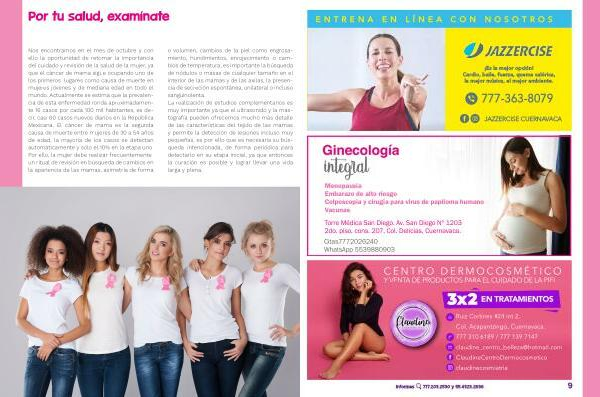 Nos encontramos en el mes de octubre y con ello la oportunidad de retomar la importancia del cuidado y revisión de la salud de la mujer , ya que el cáncer de mama sigue ocupando uno de los primeros lugares como causa de muerte en mujeres jóvenes y de mediana edad en todo el mundo . Actualmente se estima que la prevalencia de esta enfermedad ronda aproximadamente 16 casos por cada 100 mil habitantes , es decir , casi 60 casos nuevos diarios en la República Mexicana . El cáncer de mama es la segunda causa de muerte entre mujeres de 30 a 54 años de edad , la mayoría de los casos se detectan automáticamente y sólo el 10 % en la etapa uno Por ello , la mujer debe realizar frecuentemente un ritual de revisión en búsqueda de cambios en la apariencia de las mamas , asimetría de forma o volumen , cambios de la piel como engrosamiento , hundimientos , enrojecimiento o cambios de temperatura , es importante la búsqueda de nódulos o masas de cualquier tamaño en el interior de las mamas y de las axilas , la presencia de secreción espontánea , unilateral o incluso sanguinolenta . La realización de estudios complementarios es muy importante ya que el ultrasonido y la mastografía pueden ofrecernos mucho más detalle de las características del tejido de las mamas y permite la detección de lesiones incluso muy pequeñas , es por ello que es necesaria su búsqueda intencionada , de forma periódica para detectarlo en su etapa inicial , ya que entonces la curación es posible y lograr llevar una vida larga y plena .