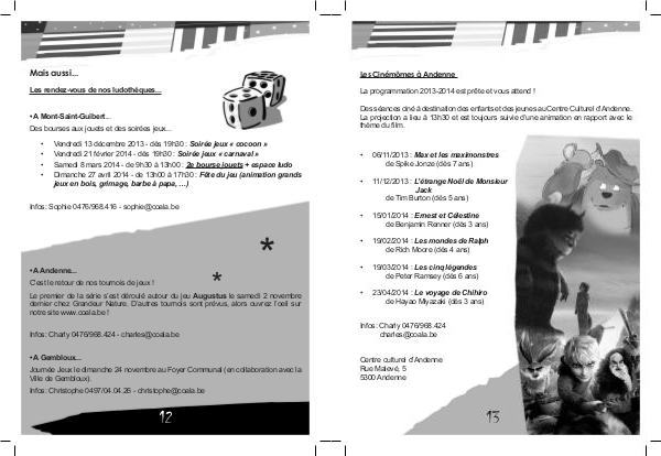 • Vendredi 13 décembre 2013- dès 19h30: Soirée jeux « cocoon »