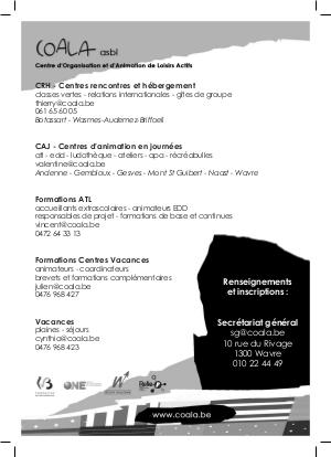 Formations ATL accueillants extrascolaires- animateurs EDD responsables de projet- formations de base et continues vincent @ coala. be 0472 64 33 13