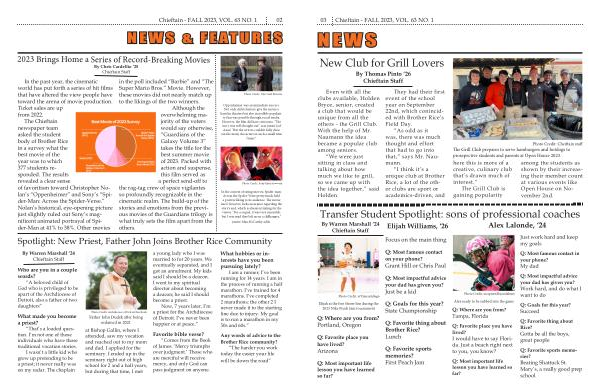 The Chieftain newspaper team asked the student body of Brother Rice in a survey what the best movie of the year was to which 377 students responded . The results revealed a clear sense of favoritism toward Christopher Nolan ’ s “ Oppenheimer ” and Sony ’ s “ Spider-Man : Across the Spider-Verse .” Nolan ’ s historical , eye-opening picture just slightly ruled out Sony ’ s magnificent animated portrayal of Spider-Man at 41 % to 38 %. Other movies