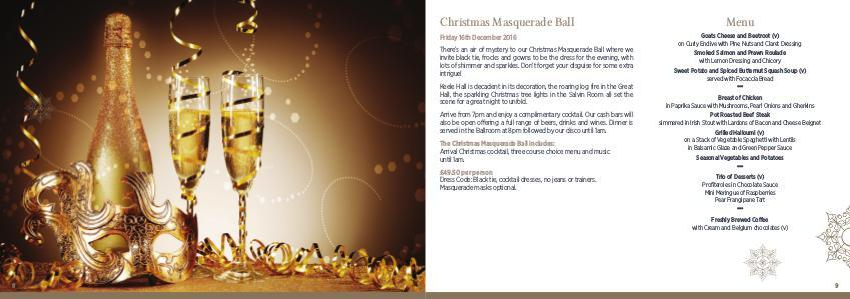 The Christmas Masquerade Ball includes: