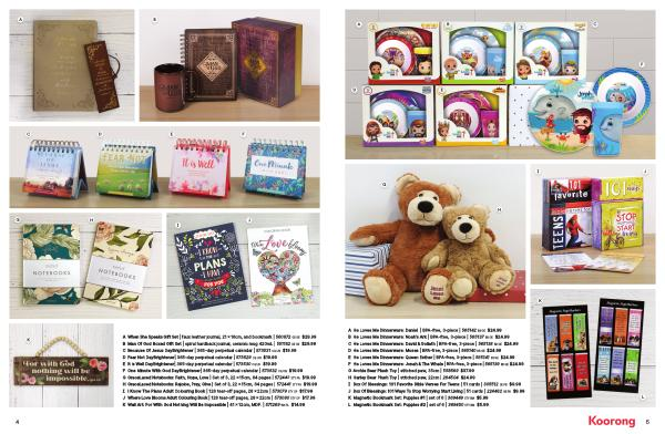 A He Loves Me Dinnerware : Daniel | BPA-free , 3-piece | 565142 BB GE $ 24.99 B He Loves Me Dinnerware : Noah ’ s Ark | BPA-free , 3-piece | 565137 BB GE $ 24.99 C He Loves Me Dinnerware : David & Goliath | BPA-free , 3-piece | 565138 BB GE $ 24.99 D He Loves Me Dinnerware : Moses | BPA-free , 3-piece | 565140 BB GE $ 24.99 E He Loves Me Dinnerware : Queen Esther | BPA-free , 3-piece | 565141 BB GE $ 24.99 F He Loves Me Dinnerware : Jonah & The Whale | BPA-free , 3-piece | 565139 BB GE $ 24.99 G Archie Bear Plush Toy | stitched paw , 35cm | 558569 $ 37.99 H Harley Bear Plush Toy | stitched paw , 22cm | 264504 $ 24.99 I Box Of Blessings : 101 Favorite Bible Verses For Teens | 51 cards | 305512 GE PB $ 9.99 J Box Of Blessings : 101 Ways To Stop Worrying Start Living | 51 cards | 224482 GE PB $ 9.99 K Magnetic Bookmark Set : Puppies # 1 | set of 6 | 369449 STY BM $ 5.99 L Magnetic Bookmark Set : Puppies # 2 | set of 6 | 369450 STY BM $ 5.99