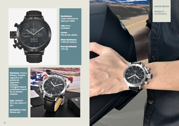 Funciones: Horas y Minutos. Pequeño segundero con parada del segundero. Fechador. Cronógrafo flyback y totalizador exacto de los minutos saltantes.