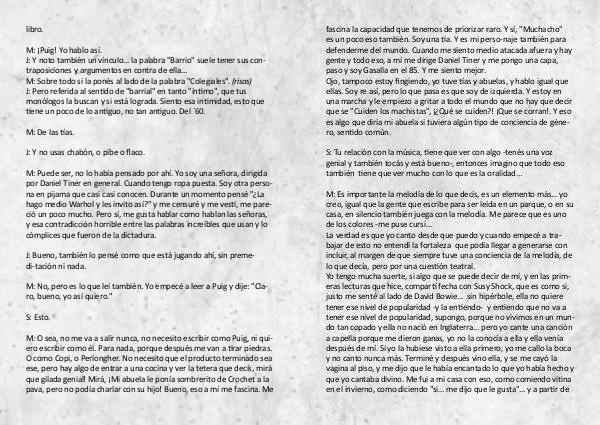 M: O sea, no me va a salir nunca, no necesito escribir como Puig, ni qui-