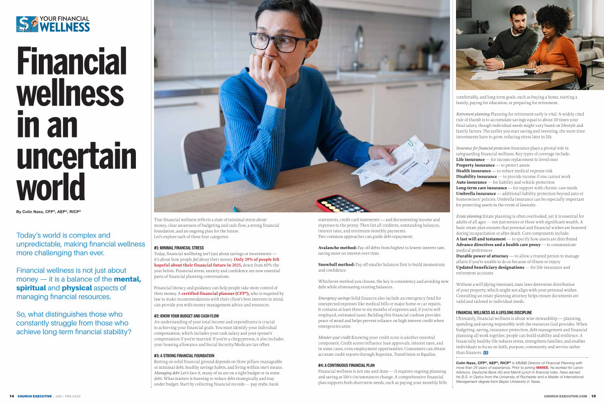 True financial wellness reflects a state of minimal stress about money, clear awareness of budgeting and cash flow, a strong financial foundation, and an ongoing plan for the future. Let’ s explore each of these four categories.