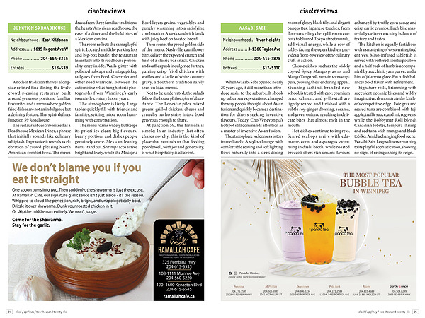 The room reflects the same playful spirit. Located amid the parking lots and big-box bustle, the restaurant leans fully into its roadhouse personality once inside. Walls glitter with polished hubcaps and vintage pickup tailgates from Ford, Chevrolet and other road warriors. Between the automotive relics hang historic photographs from Winnipeg’ s early twentieth-century boom years.