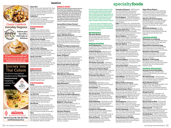 Reflecting Winnipeg’ s ethnocultural diversity, this category represents our top choices from the many small, primarily family‐run restaurants in town. The decor at most of these is simple and / or the location is out of the way. However, each restaurant represents stellar food from the owner’ s culture, served simply.