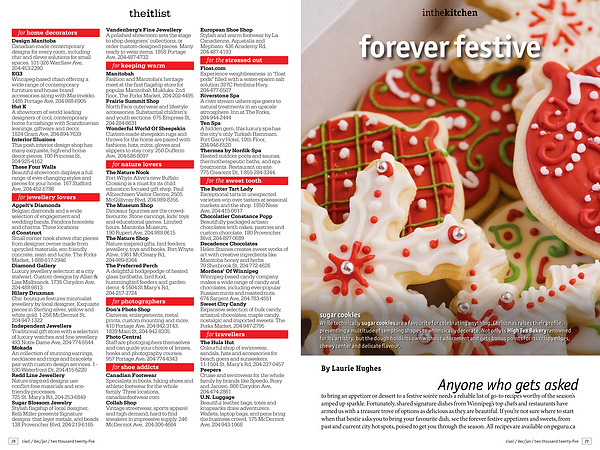 Anyone who gets asked to bring an appetizer or dessert to a festive soirée needs a reliable list of go-to recipes worthy of the season’ s amped up sparkle. Fortunately, shared signature dishes from Winnipeg’ s top chefs and restaurants have armed us with a treasure trove of options as delicious as they are beautiful. If you’ re not sure where to start when that bestie asks you to bring your favourite dish, see the forever festive appetizers and sweets, from past and current city hot spots, poised to get you through the season. All recipes are available on peguru. ca
