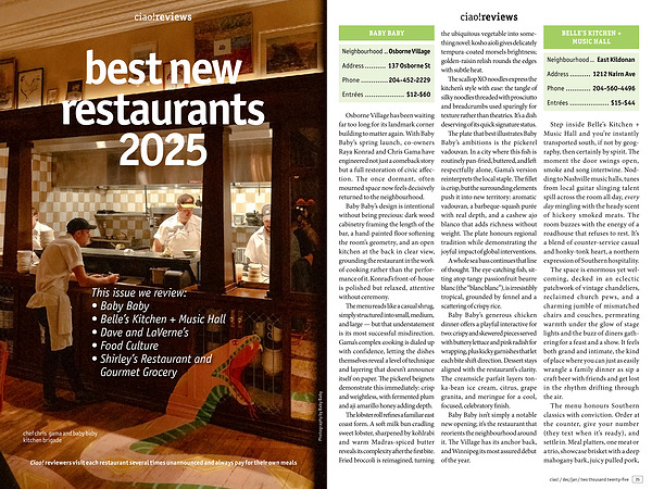 Baby Baby isn’ t simply a notable new opening; it’ s the restaurant that reorients the neighbourhood around it. The Village has its anchor back, and Winnipeg its most assured debut of the year.