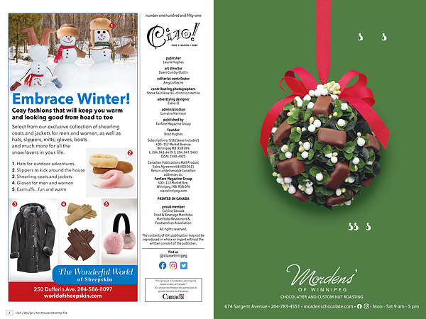 Canadian Publications Mail Product Sales Agreement # 40010531 Return undeliverable Canadian addresses to: Fanfare Magazine Group 400 – 112 Market Ave, Winnipeg, MB R3B 0P4 ciaowinnipeg. com