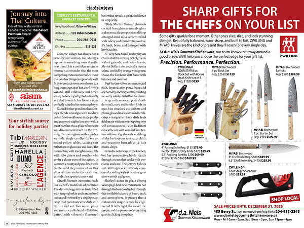 485 Berry St.( just minutes from Polo Park) 204-953-2345 www. danielsgourmetkitchenware. ca