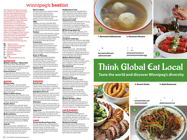 Boreal Bistro 85 Israel Asper Way, 204-289-2187. A socially conscious and culturally diverse menu reflect the setting of this dining spot inside the CMHR.