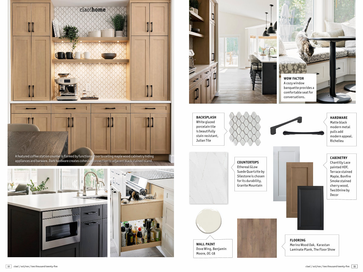 CABINETRY Chantilly Lace painted HDF, Terrace stained Maple, Bonfire Smoke stained cherry wood, Two30nine by Decor