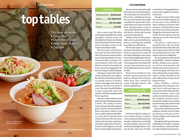 Ciao! reviewers visit each restaurant several times unannounced and always pay for their own meals