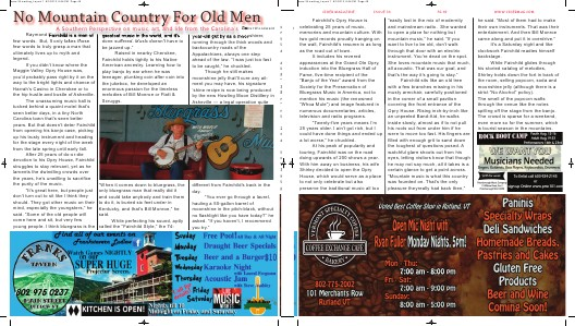 Fairchild sits like an old tree with a few branches missing in his musty armchair, carefully positioned in the corner of a small pavilion covering the front entrance of the Opry House. Rising inch-by-inch like an unpeeled Band-Aid, he walks inside slowly, almost as if to not pull his roots out from under him if he were to move too fast. His fingers are filled with enough grit to sand down the toughest of questions posed. A watchful glare shoots out from his eyes, letting visitors know that though he may not say much, all it takes is a certain glance to get a point across.“ Mountain music is what this country was founded on. That’ s the only pleasure theyreally had back then,”