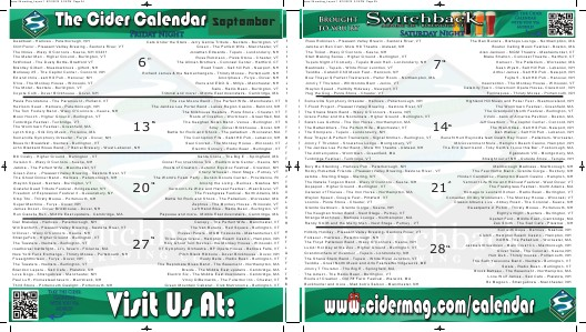 Somerville Symphony Orkestar - Harlows - Peterborough, NH T-Flood Project - Pleasant Valley Brewing - Saxtons River, VT The Shana Stack Band - Waxy O’Connors - Keene, NH Grace Potter and the Nocturnals - Higher Ground - Burlington, VT Sarah Lee Guthrie - The Iron Horse - Northampton, MA The Battenkillers - The Perfect Wife - Manchester, VT The Stompers - Tupelo - Londonderry, NH Bow Thayer & Perfect Trainwreck - Signal Kitchen - Burlington,?VT Jimmy T Thurston - Snowshoe Lodge - Montgomery, VT The Jandee Lee Porter Band - Mole Hill?Theatre - Alstead, NH The Alchemystics - Wormtown - Greenfield, MA Tunbridge Festival - Tunbridge, VT