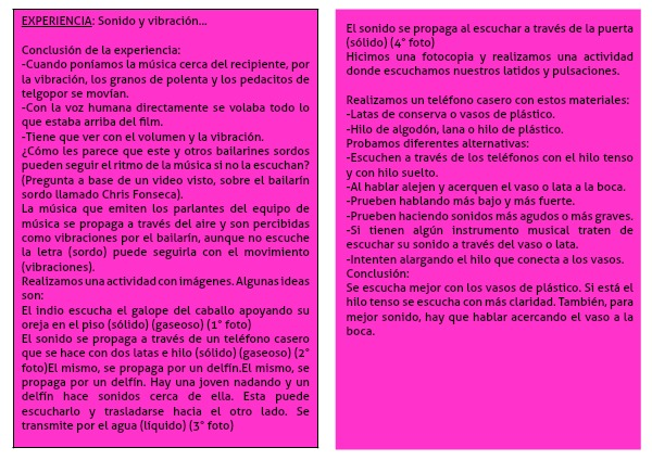 -Cuando poníamos la música cerca del recipiente, por la vibración, los granos de polenta y los pedacitos de telgopor se movían.