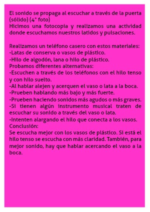 -Si tienen algún instrumento musical traten de escuchar su sonido a través del vaso o lata.
