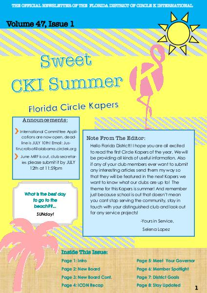 THE OFFICIAL NEWSLETTER OF THE FLORIDA DISTRICT OF CIRCLE K INTERNATIONAL