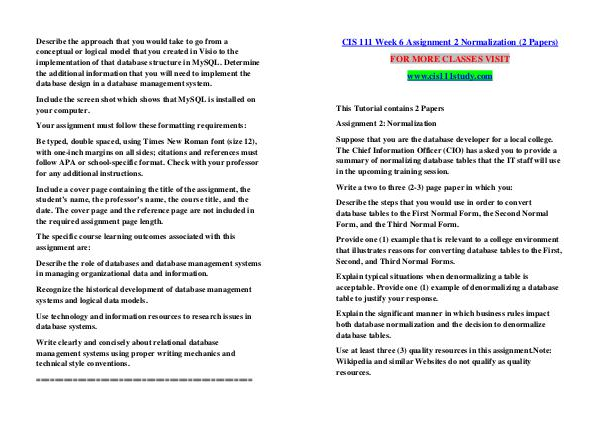 CIS 111 Week 6 Assignment 2 Normalization (2 Papers)