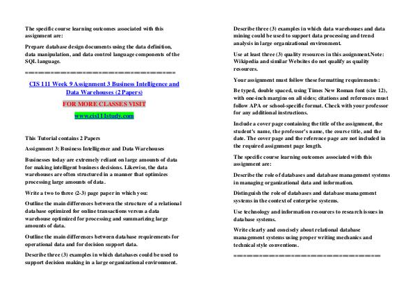CIS 111 Week 9 Assignment 3 Business Intelligence and