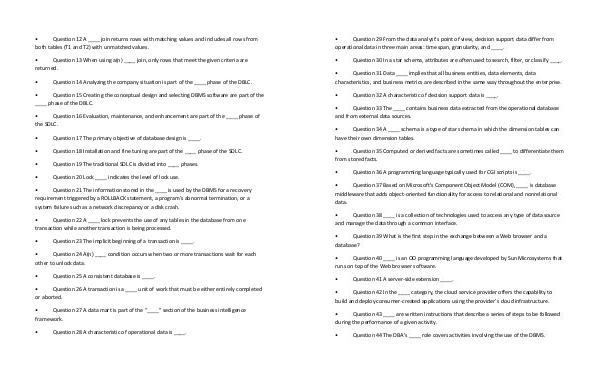 Question 44 The DBA’s ____ role covers activities involving the use of the DBMS.