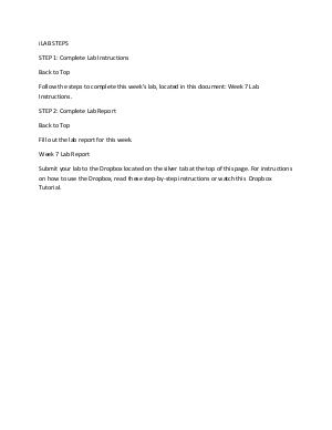 Follow the steps to complete this week’s lab, located in this document: Week 7 Lab