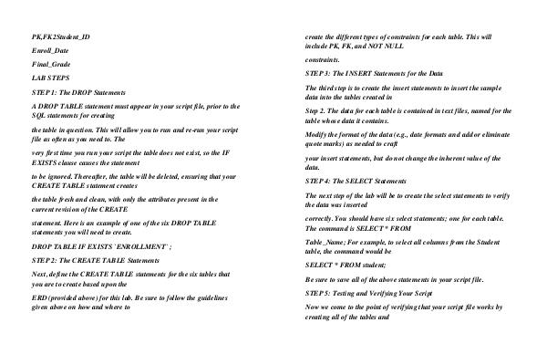 include PK, FK, and NOT NULL