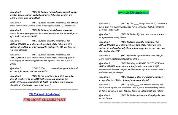 CIS 336 Week 5 Quiz (New)