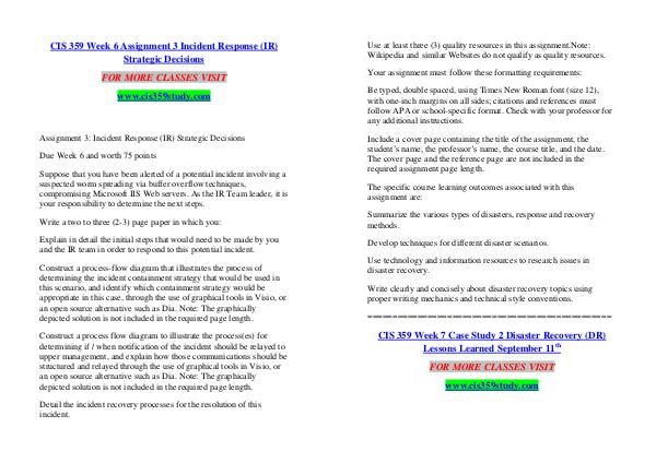CIS 359 Week 7 Case Study 2 Disaster Recovery (DR)