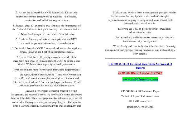 CIS 502 Week 10 Technical Paper Risk Assessment( 2 Papers)