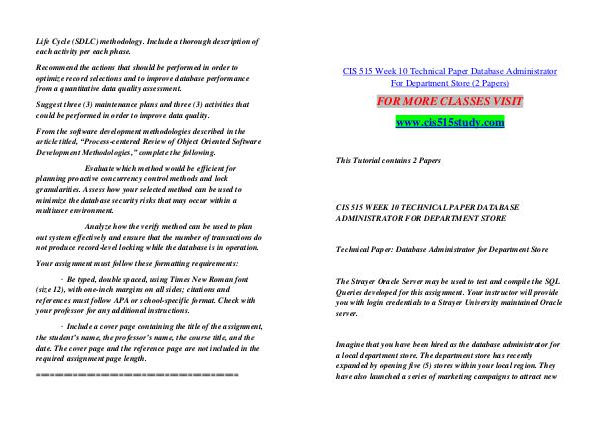 CIS 515 WEEK 10 TECHNICAL PAPER DATABASE
