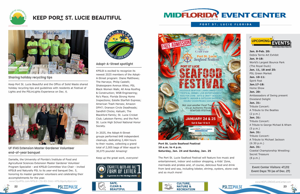 Danielle, the University of Florida ' s Institute of Food and Agricultural Sciences Extension Master Gardener Volunteer Program Specialist- and KPSLB Committee Vice Chair- invited KPSLB and Naturally PSL to its year-end banquet Dec. 5, honoring its master gardener volunteers and celebrating their accomplishments for the year. www. CityofPSL. com / KPSLB • 772-871-7000 • KPSLB @ cityofpsl. com