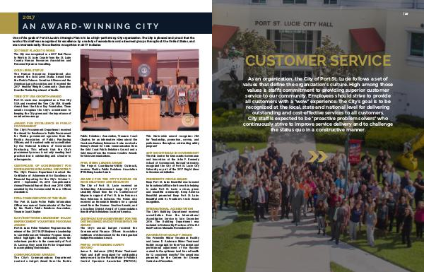 One of the goals of Port St. Lucie’ s Strategic Plan is to be a high-performing City organization. The City is pleased and proud that the work of its staff was recognized for excellence by a variety of associations and esteemed groups throughout the United States, and even internationally. The collective recognition in 2017 includes: