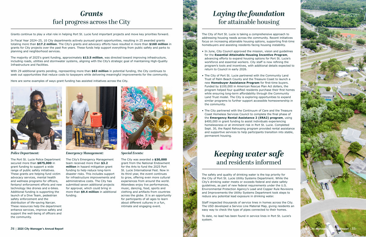 • In June, City Council approved the mission, vision and guidelines for the Essential Attainable Housing Incentive Program, advancing efforts to expand housing options for Port St. Lucie’ s workforce and essential workers. City staff is now refining the program’ s tools and incentives, with additional details expected to return to Council in early 2026.