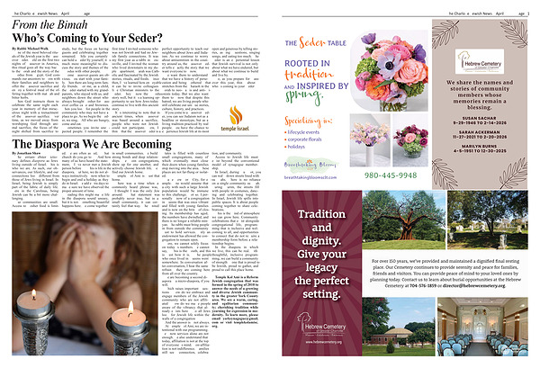 perfect opportunity to teach our neighbors about Jews and Judaism. As we continue to worry about antisemitism in the country around us, the Passover Seder tells exactly the story that we want everyone to know.