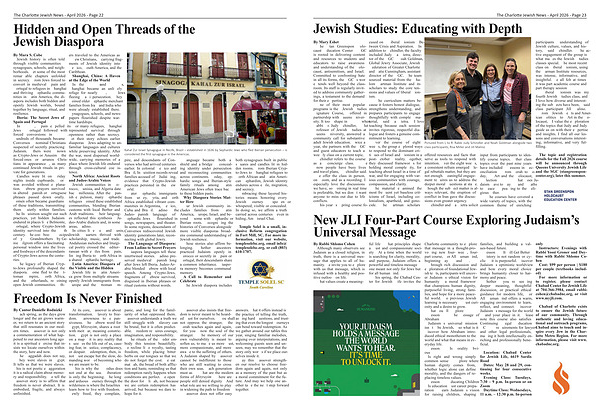 input from participants to identify course topics. Other class topics over the past nine years have included“ Lessons in Reconciliation: From Torah to Today,”“ Art and the Holocaust,”“ Election 2024: What Does Judaism Have to Say?” and“ Paths to Peace: Speaking to the Religious Other.”