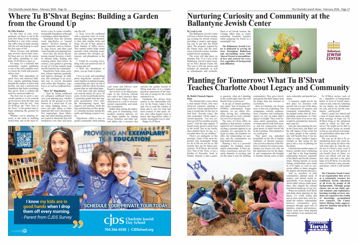 The way we do this is by remembering those who came before us and caring for those who will come after us. Like the carob tree in Choni’ s story, even if we never see its full growth or can benefit from its fruits, we know our efforts will one day bear fruit, and that is the quiet hope of Tu B’ Shvat. It is also the story of Charlotte’ s past, present, and future, which is still unfolding.