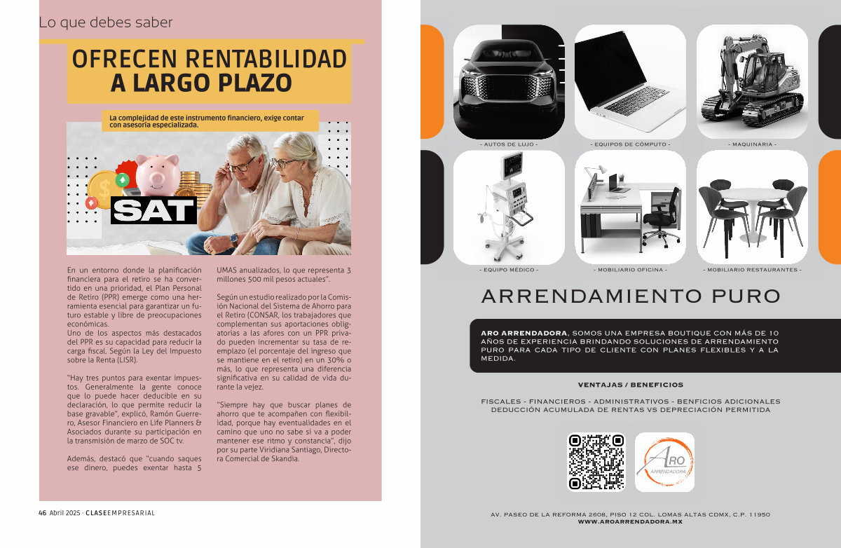 AV. PASEO DE LA REFORMA 2608, PISO 12 COL. LOMAS CLASEEMPRESARIAL ALTAS CDMX, C · Noviembre. P. 11950 2024 47 WWW. AROARRENDADORA. MX