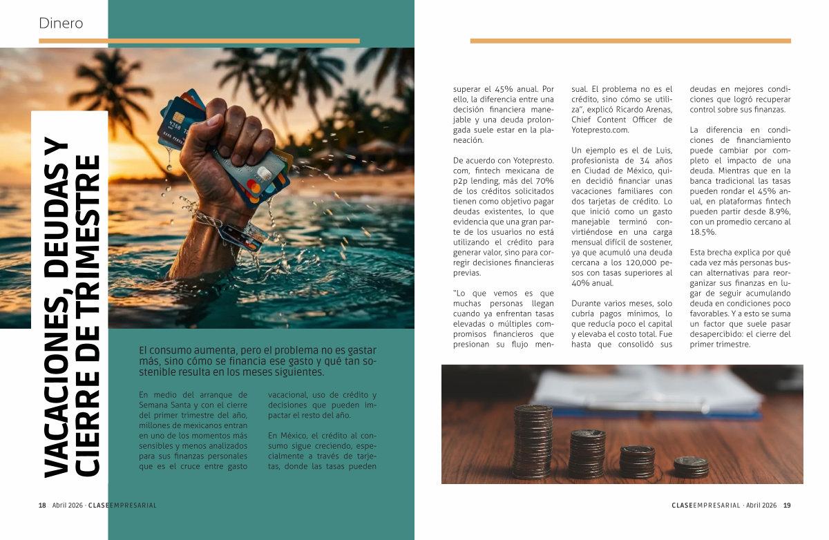 “ Lo que vemos es que muchas personas llegan cuando ya enfrentan tasas elevadas o múltiples compromisos financieros que presionan su flujo mensual. El problema no es el crédito, sino cómo se utiliza”, explicó Ricardo Arenas, Chief Content Officer de Yotepresto. com.