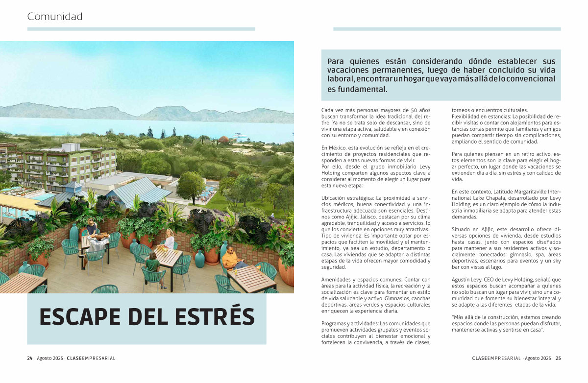 Agustín Levy, CEO de Levy Holding, señaló que estos espacios buscan acompañar a quienes no solo buscan un lugar para vivir, sino una comunidad que fomente su bienestar integral y se adapte a las diferentes etapas de la vida: