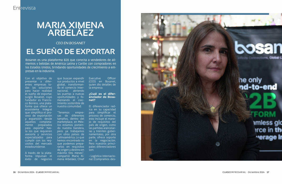 Con el objetivo de presentar a diferentes empresas todas las soluciones para hacer realidad el sueño de exportar , surgió Bosanet , cuyo fundador es Francisco Borrero , una plataforma que ofrece un ecosistema integral que simplifica el proceso de exportación y expansión : desde aquellos completamente preparados para exportar hasta los que requieren asesoría y servicios especializados para cumplir con los requisitos del mercado estadounidense .