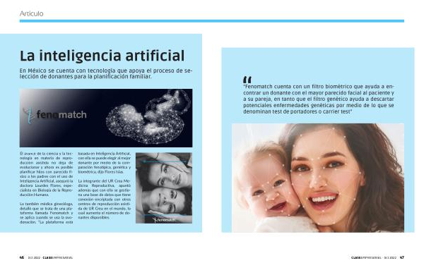 “ Fenomatch cuenta con un filtro biométrico que ayuda a encontrar un donante con el mayor parecido facial al paciente y a su pareja , en tanto que el filtro genético ayuda a descartar potenciales enfermedades genéticas por medio de lo que se denominan test de portadores o carrier test ”