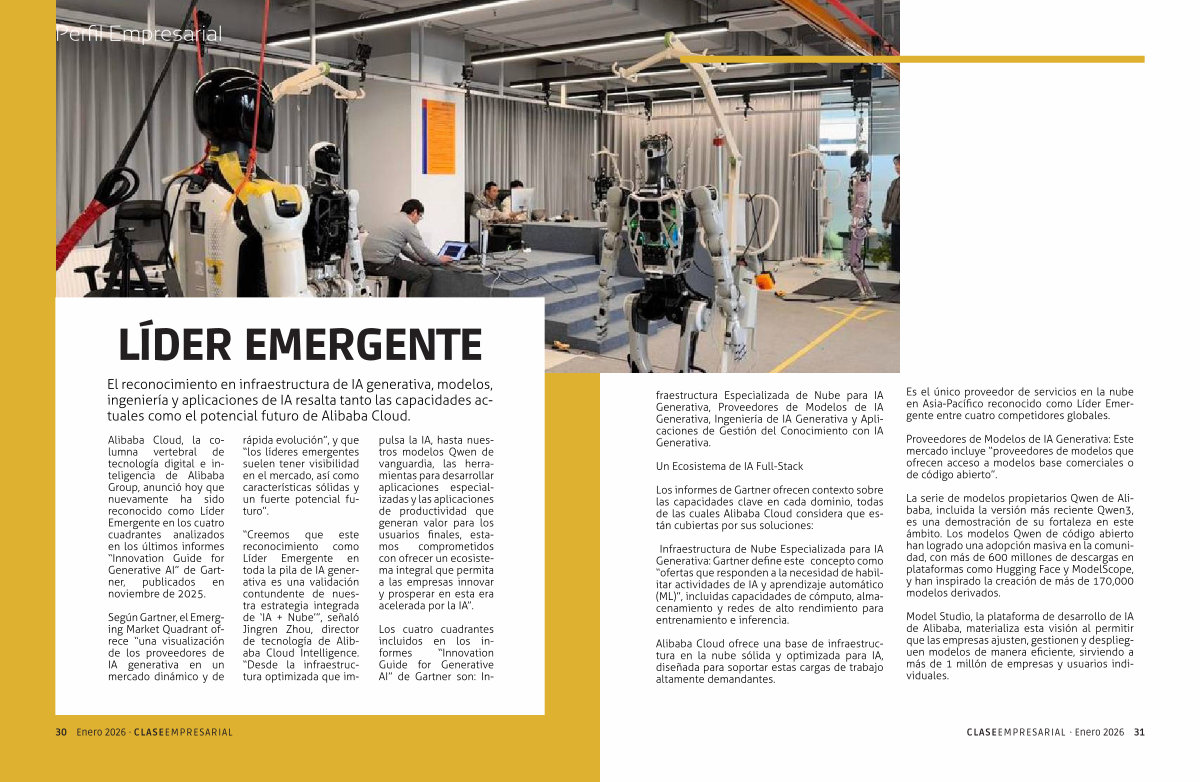 Alibaba Cloud, la columna vertebral de tecnología digital e inteligencia de Alibaba Group, anunció hoy que nuevamente ha sido reconocido como Líder Emergente en los cuatro cuadrantes analizados en los últimos informes“ Innovation Guide for Generative AI” de Gartner, publicados en noviembre de 2025.