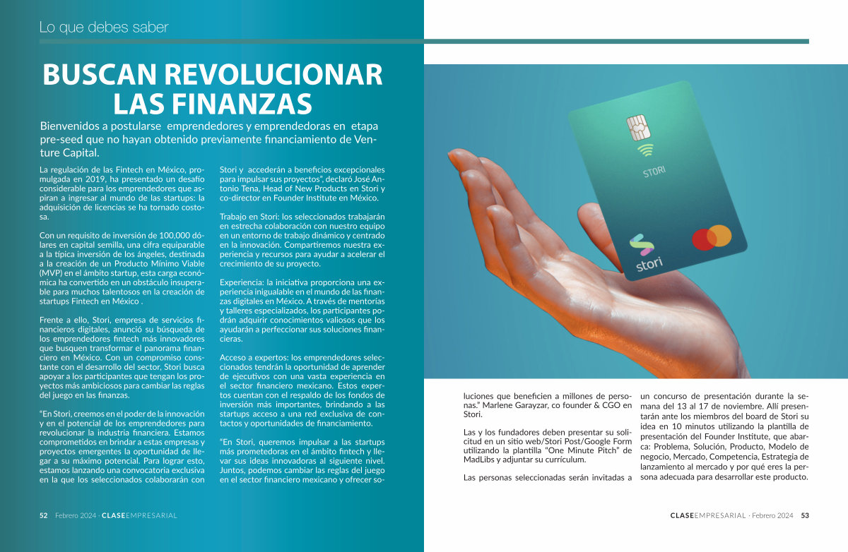 Stori y accederán a beneficios excepcionales para impulsar sus proyectos ”, declaró José Antonio Tena , Head of New Products en Stori y co-director en Founder Institute en México .