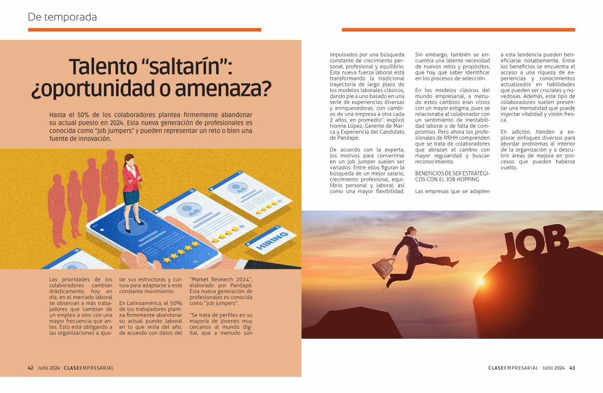 impulsados por una búsqueda constante de crecimiento personal , profesional y equilibrio . Esta nueva fuerza laboral está transformando la tradicional trayectoria de largo plazo de los modelos laborales clásicos , dando pie a uno basado en una serie de experiencias diversas y enriquecedoras , con cambios de una empresa a otra cada 2 años , en promedio ”, explicó Ivonne López , Gerente de Marca y Experiencia del Candidato de Pandapé .