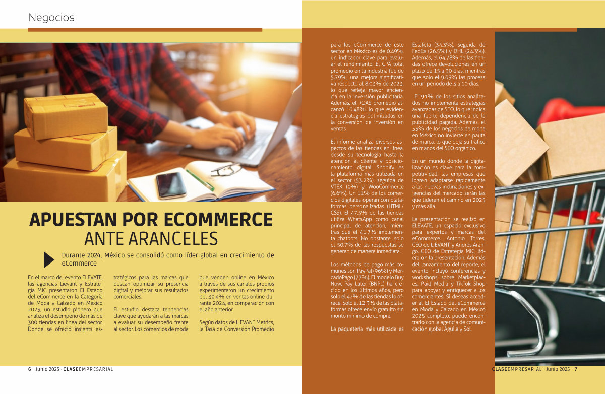La presentación se realizó en ELEVATE, un espacio exclusivo para expertos y marcas del eCommerce. Antonio Torres, CEO de LIEVANT, y Andrés Arango, CEO de Estrategia MIC, lideraron la presentación. Además del lanzamiento del reporte, el evento incluyó conferencias y workshops sobre Marketplaces, Paid Media y TikTok Shop para apoyar y enriquecer a los comerciantes. Si deseas acceder al El Estado del eCommerce en Moda y Calzado en México 2025 completo, puede encontrarlo con la agencia de comunicación global Águila y Sol.