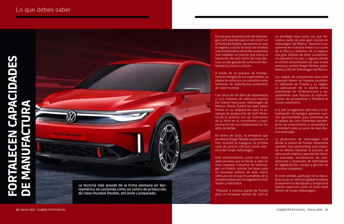 La producción de Volkswagen Golf desde la planta de Puebla representa también una oportunidad para impulsar al talento nacional. El proceso de adecuación implica capacitación técnica avanzada, actualización de competencias y desarrollo de habilidades en digitalización, calidad y gestión de procesos complejos.